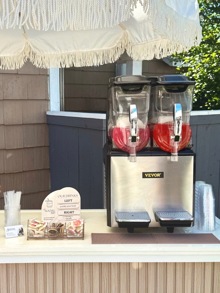 Due to California liquor laws, The Social Sip does not provide or sell alcohol. Alcohol must be supplied by you or your venue. We will provide you with an alcohol recommendation guide and exact quantities needed to perfectly craft your cocktails. On the day of your event, we will mix the alcohol you provide with our signature frozen drink blends in the slushy machine prior to service.